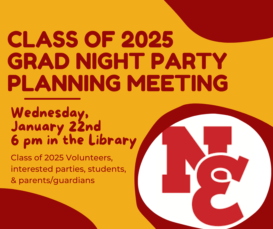Attention SENIORS and PARENTS/GUARDIANS! The next Senior Grad Party Planning meeting is Wednesday, January 22nd at 6 pm in the library. All is welcome, both students and parents/guardians.
