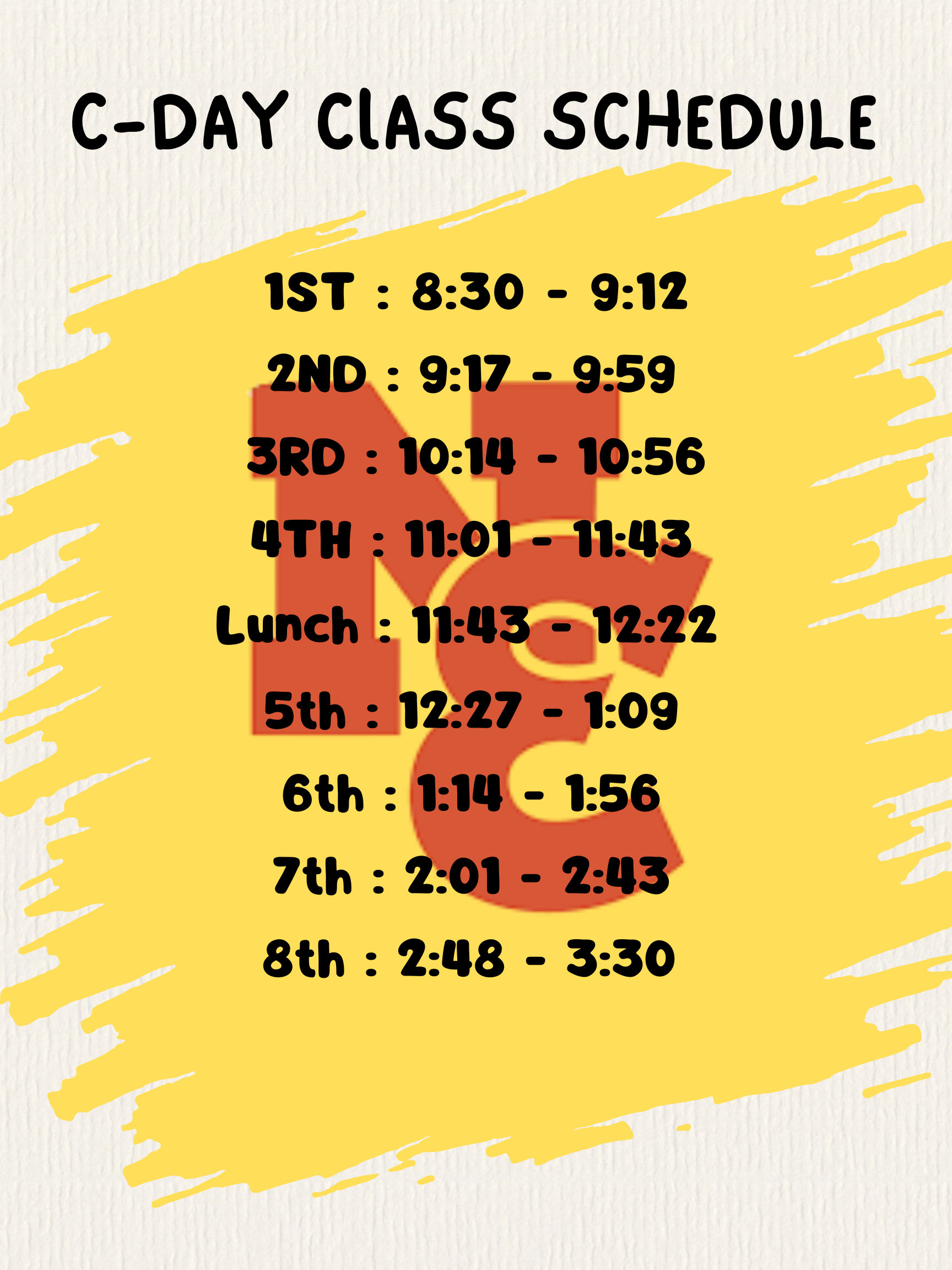 📅 Special Schedule Reminder – C DayThis Thursday, January 29, North Eugene High School will be on a Special C Day schedule. Please plan ahead for adjusted class times and transitions throughout the day.